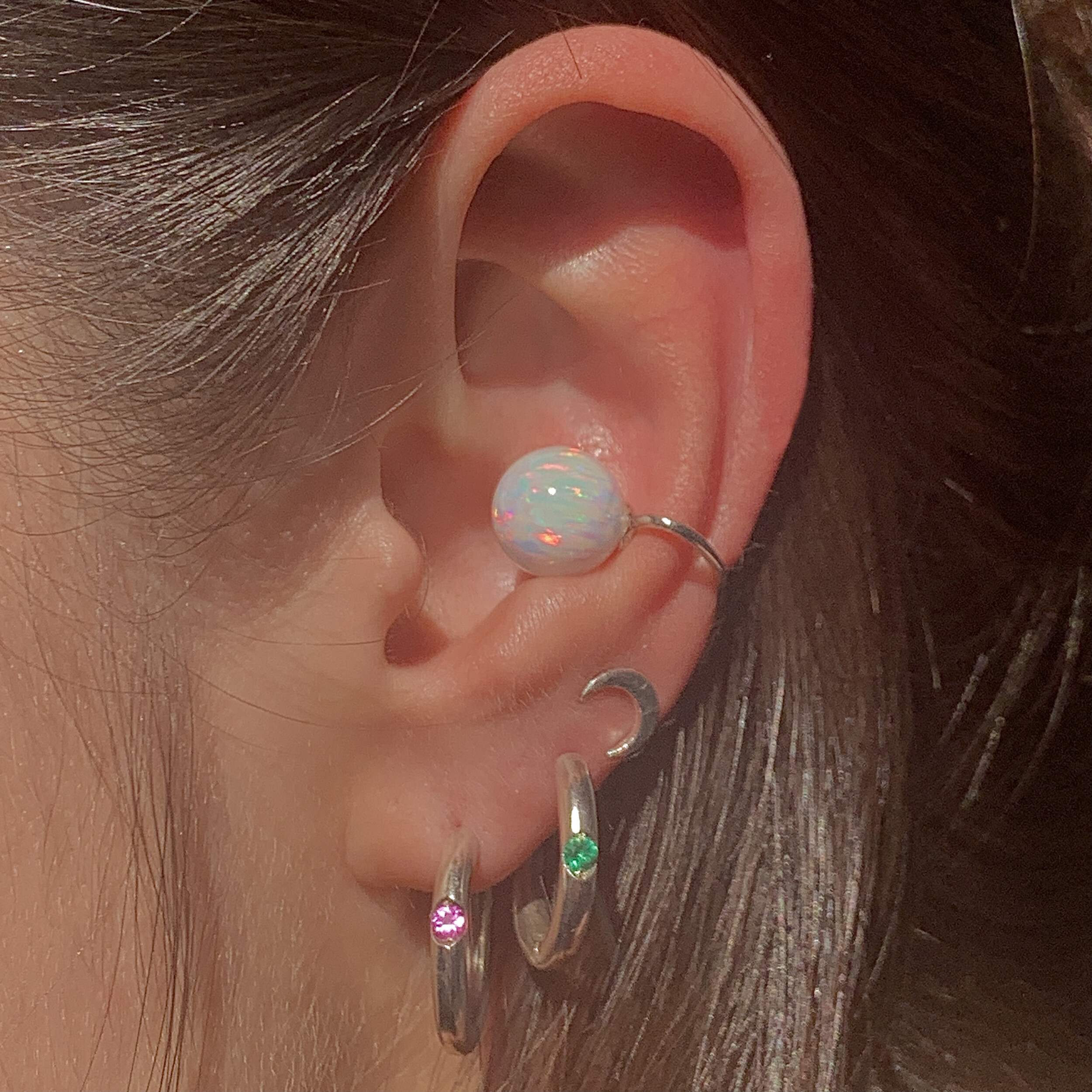 - 우주에 떠있는 행성을 모티브로 삼은 레인보우 오팔 이어커프