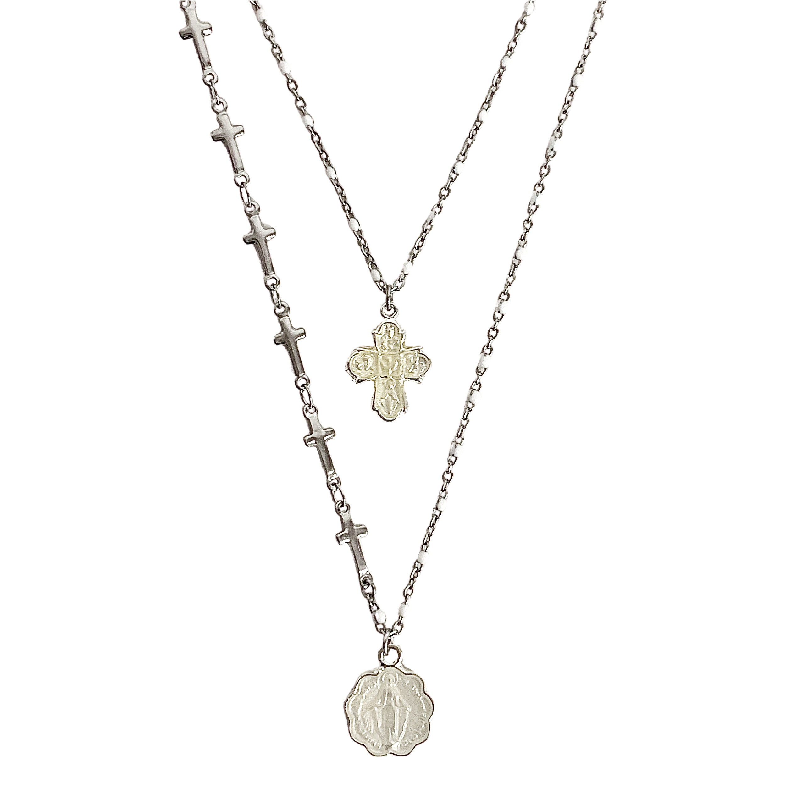 - 목걸이 2개가 하나의 세트로 구성된 제품으로, 각각 따로따로 착용 가능합니다.