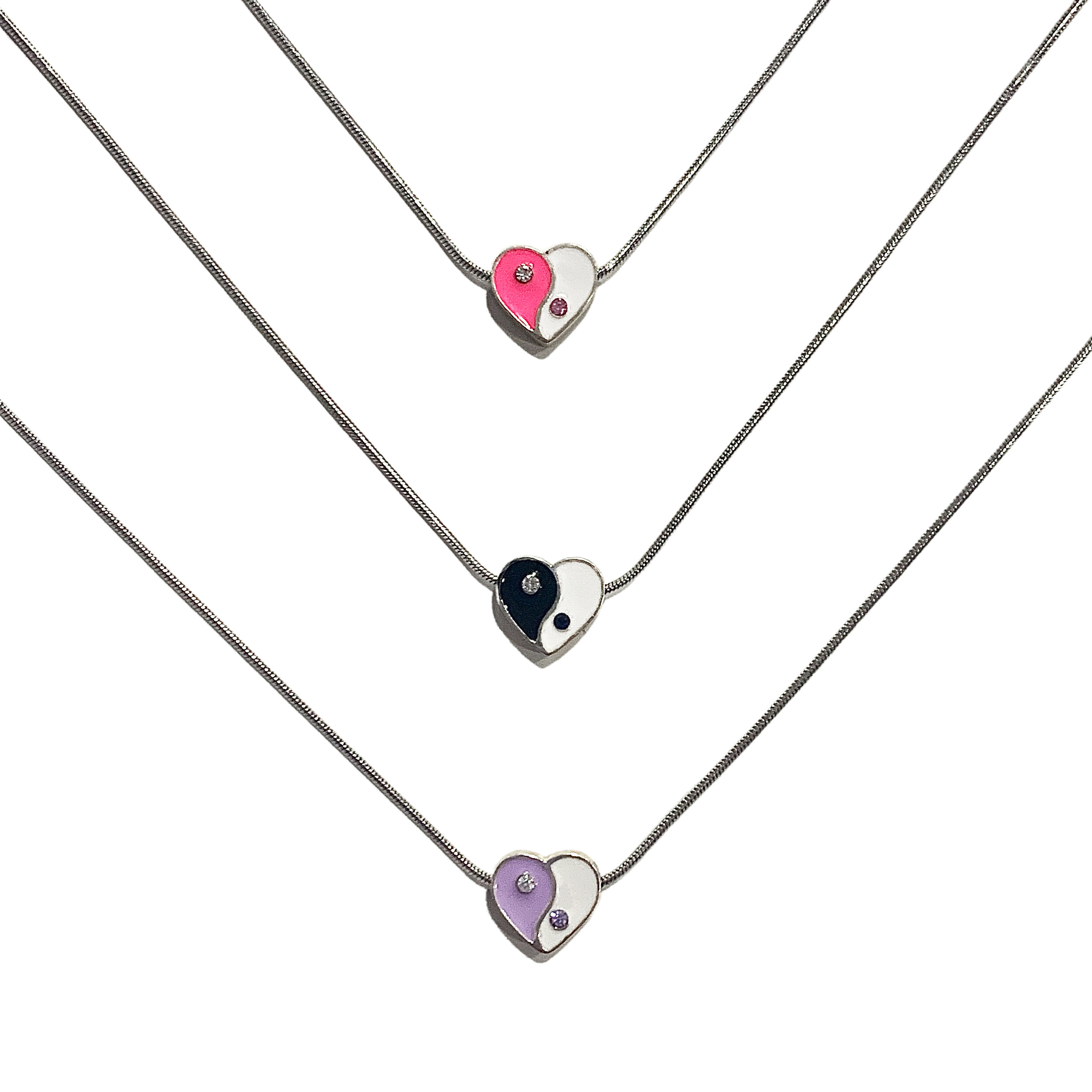 기존의 블랙 컬러 나일론 줄로 된 'YIN YANG MINI HEART NECKLACE_BLACK' 제품과 동일한 형태의 펜던트이나, 해당 제품에 사용된 펜던트는 실버925 제작되어 소재가 다른 점 참고 부탁드립니다.