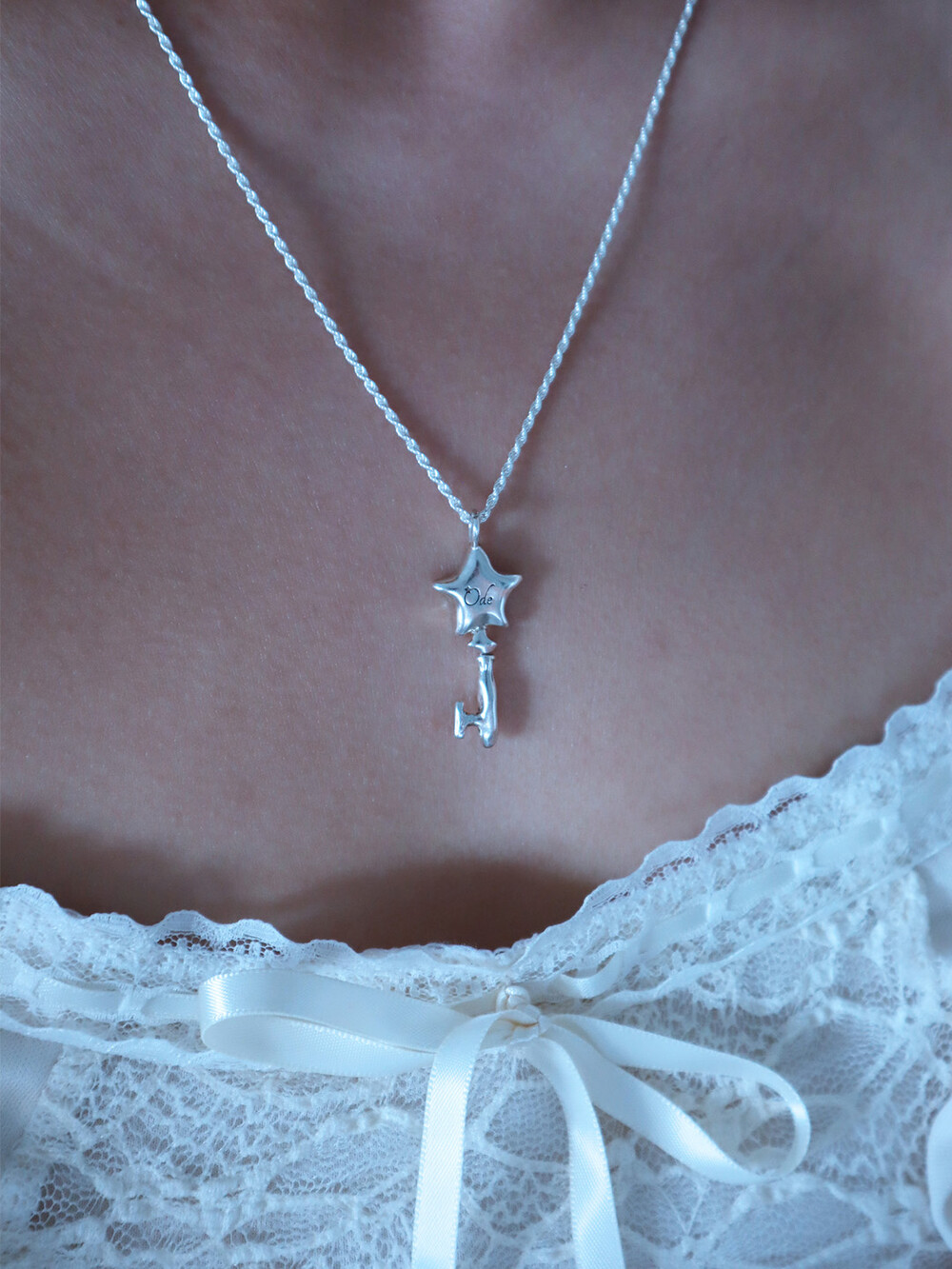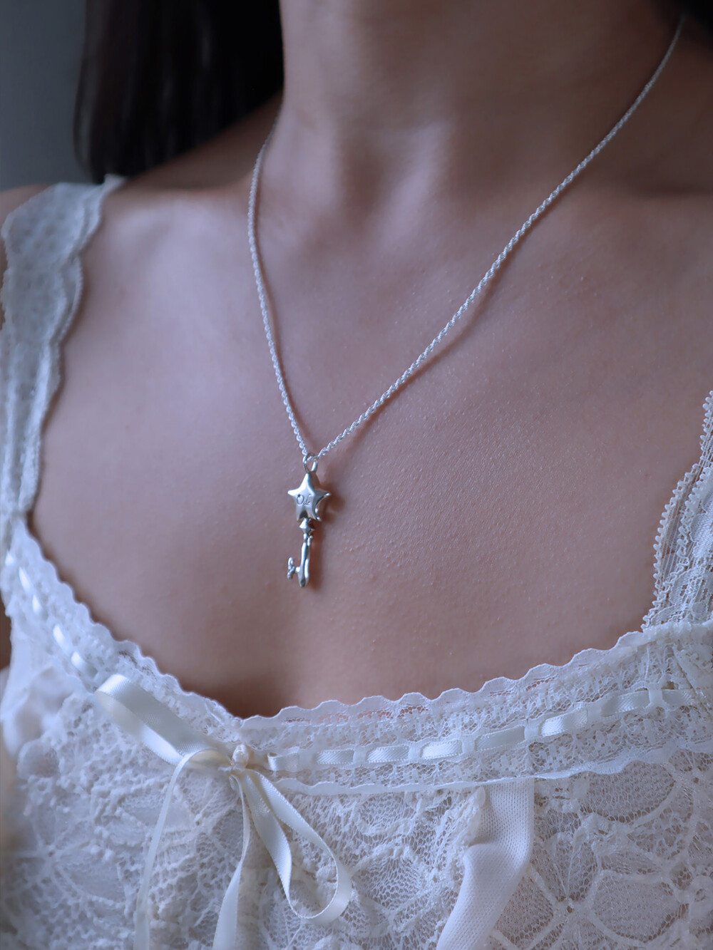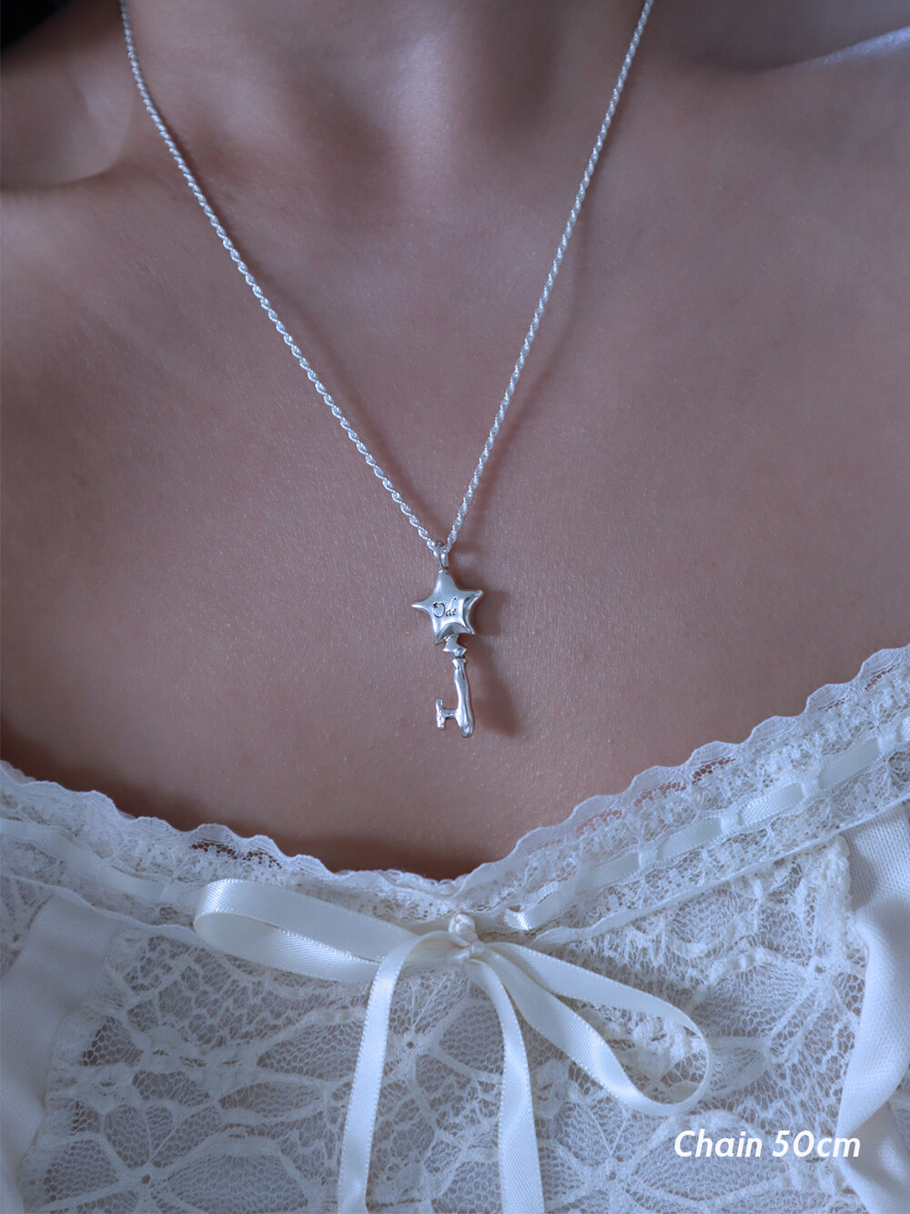 별과 열쇠 모양을 조합하여 제작한 실버 네크리스.
