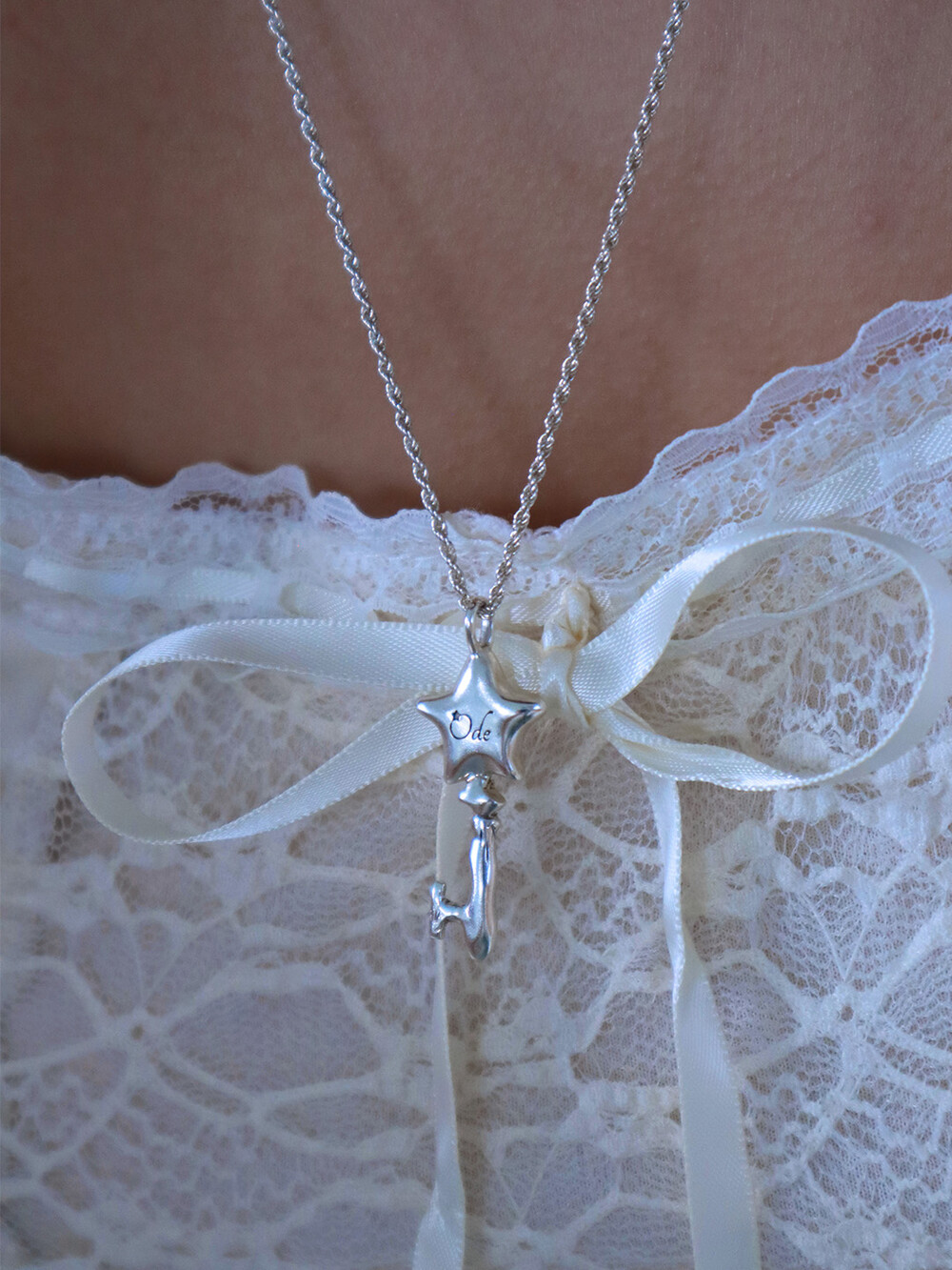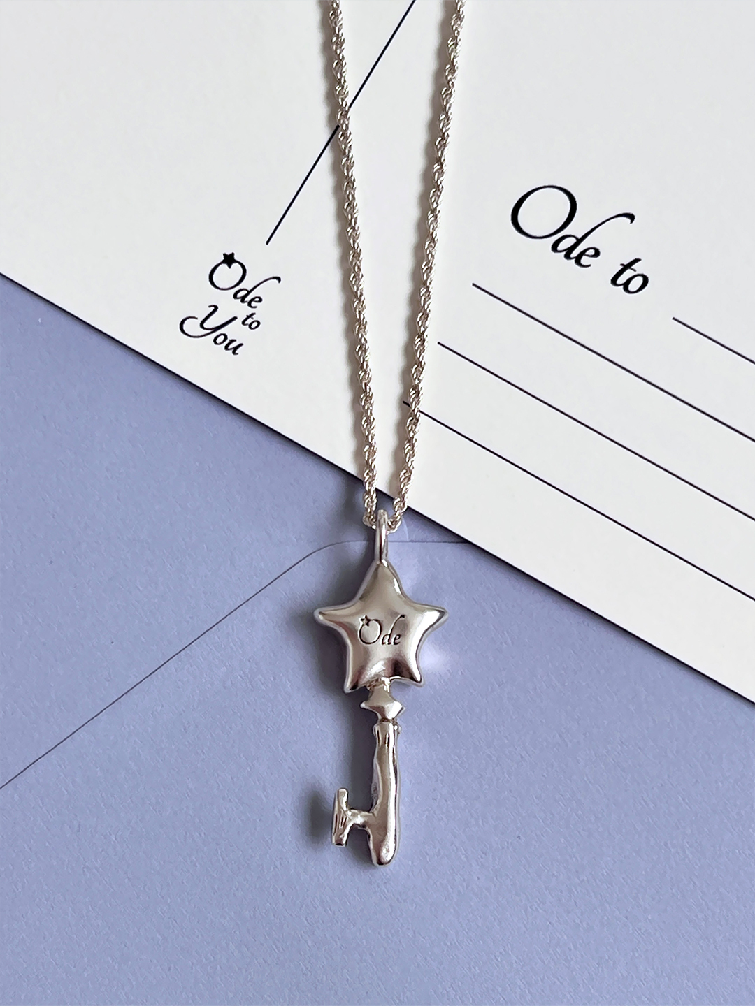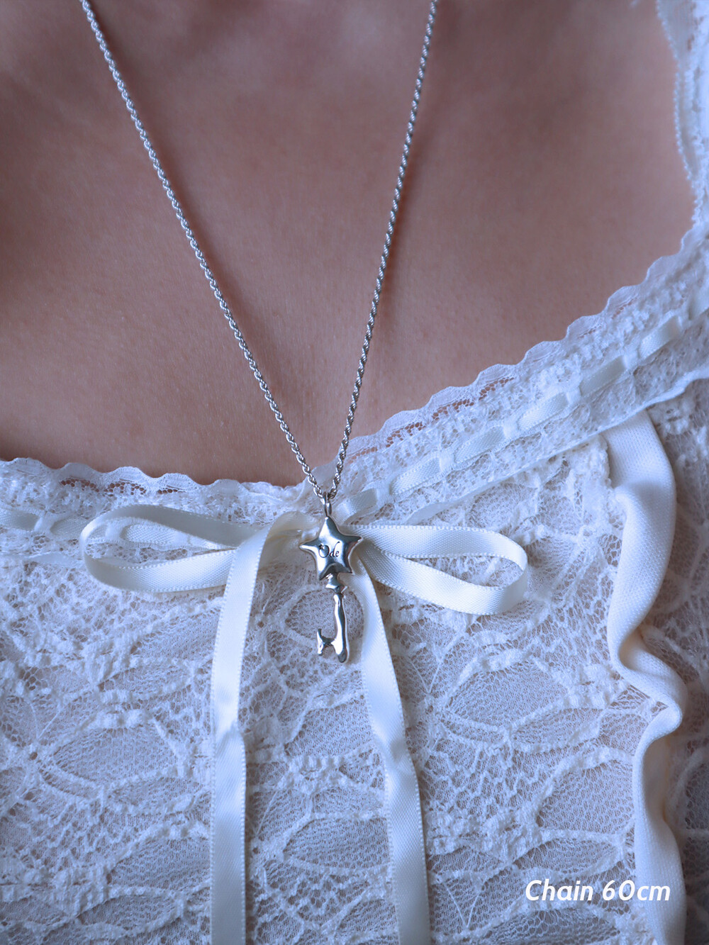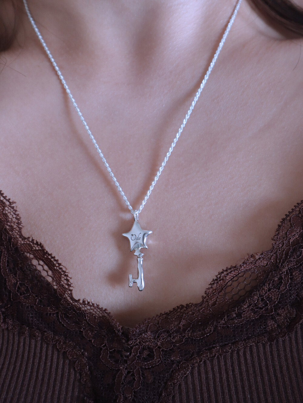 별과 열쇠 모양을 조합하여 제작한 실버 네크리스.