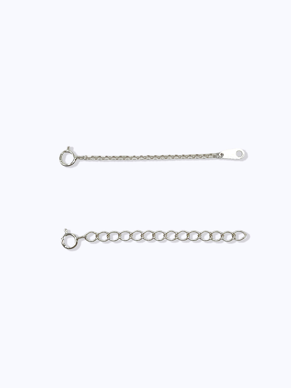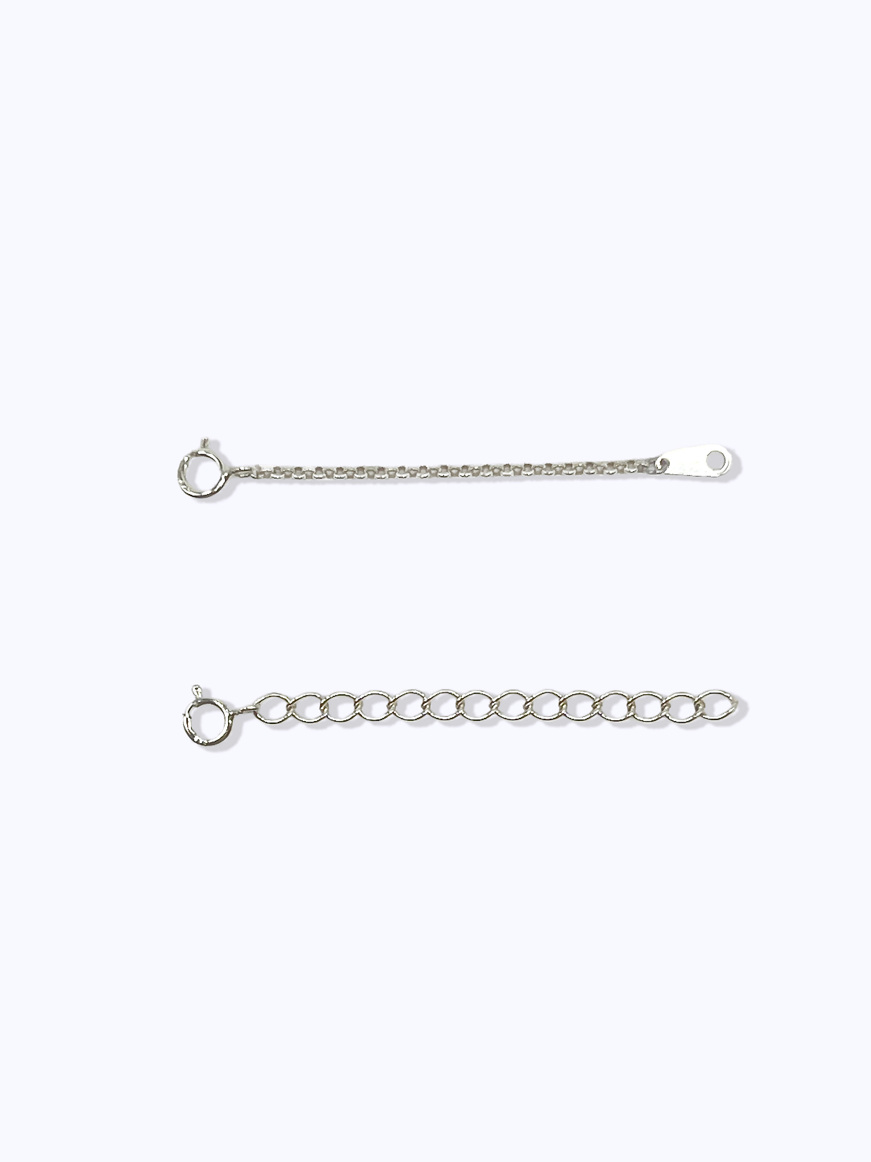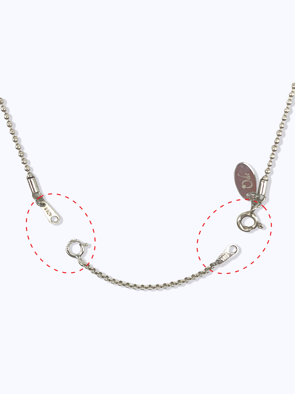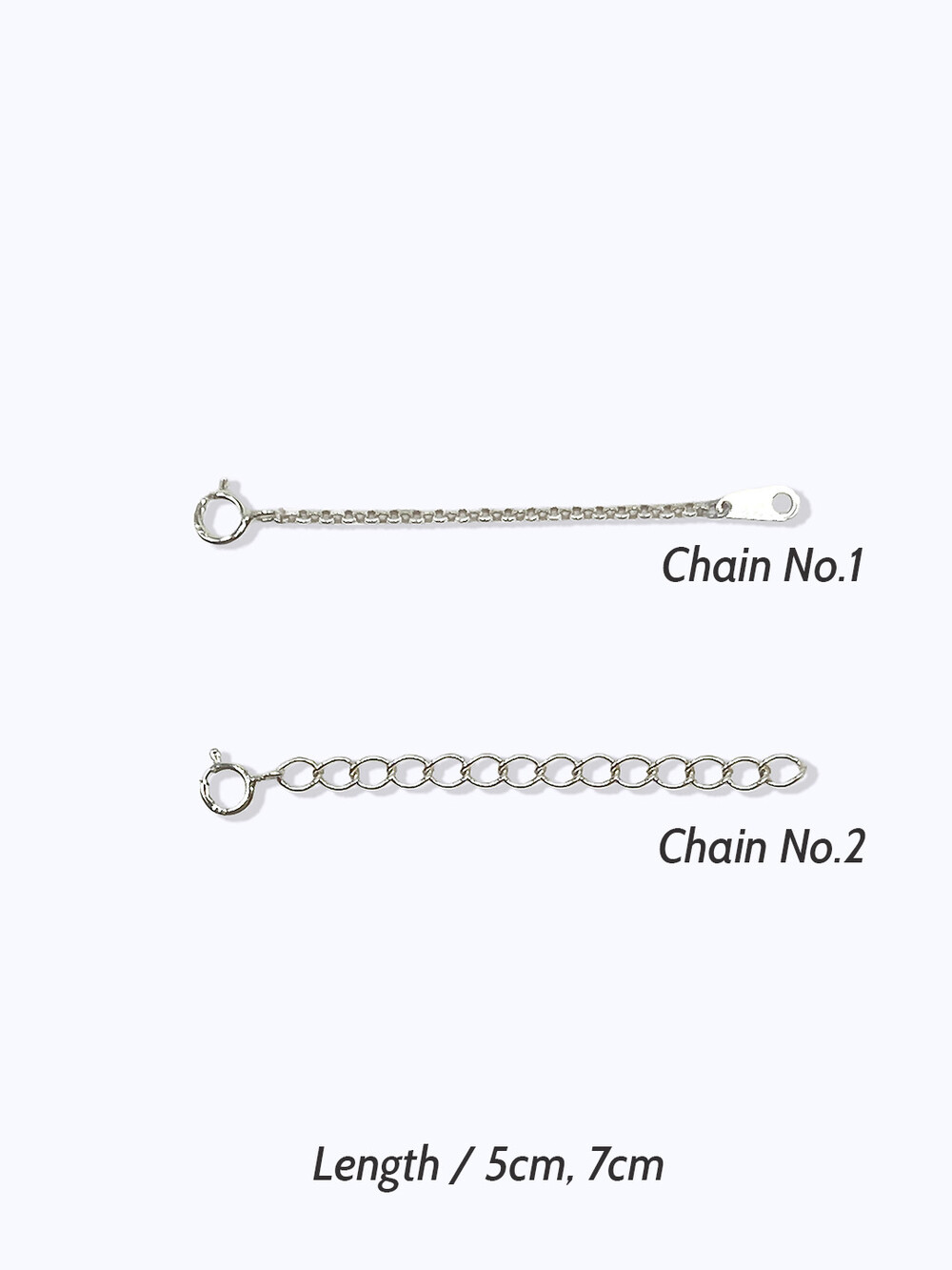 체인 끝 부분에 결합하여 목걸이의 전체 길이를 늘일 수 있는 길이 연장 체인.