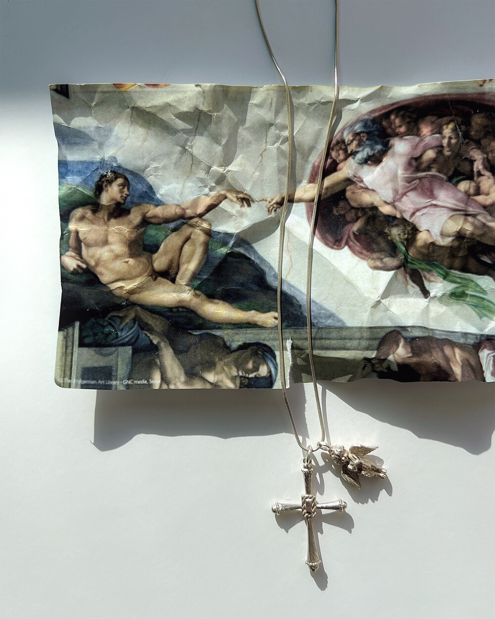시간이 흐를수록 빈티지한 매력이 살아나는 십자가 & 천사 조합의 실버 네크리스.