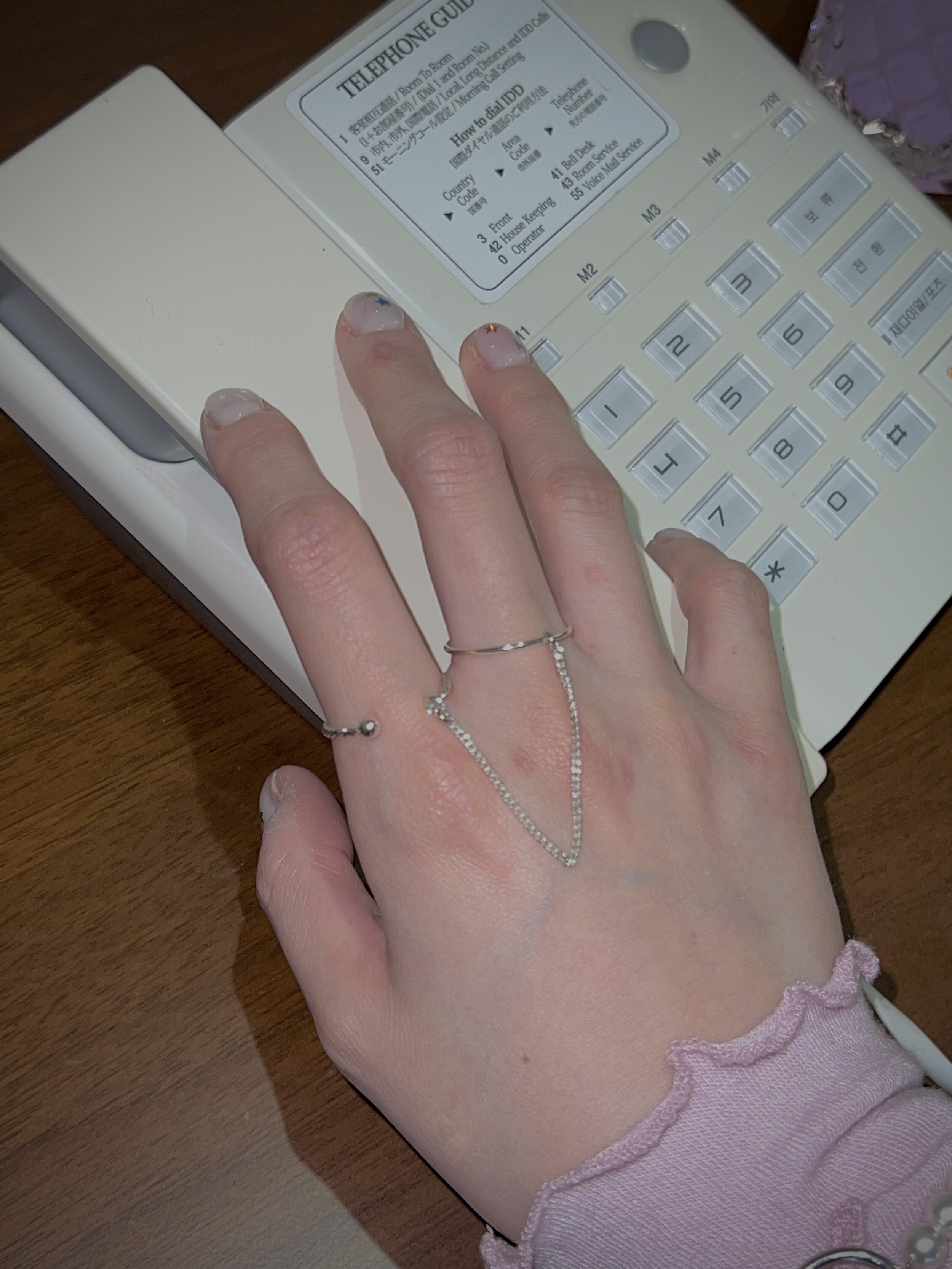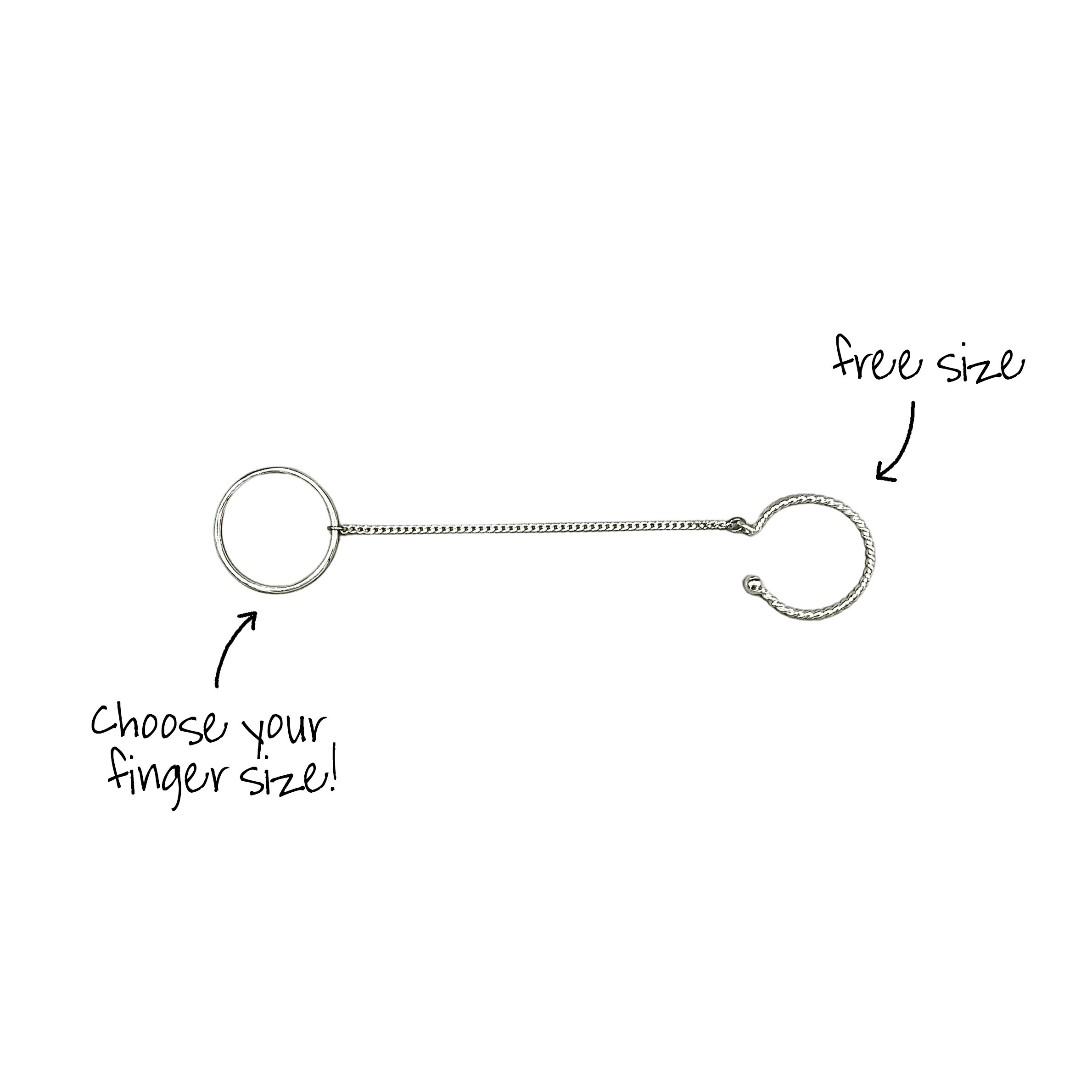 사이즈 조절이 가능한 오픈 타입의 실버 링과 베이직한 실버 링이 체인으로 연결되어 있는 제품입니다. 두 개의 링은 탈착이 불가하며, 오픈 타입 링의 경우 최소 10호 ~ 최대 15호 사이즈로 착용하실 수 있습니다. 오픈 링에 연결된 또 다른 하나의 링 사이즈는 옵션에서 선택해주세요!