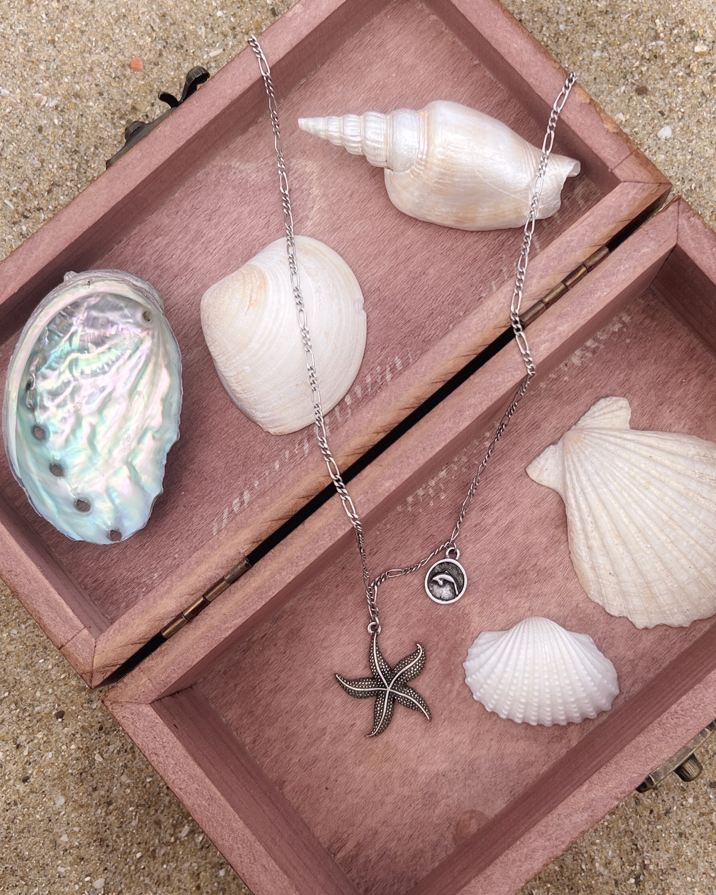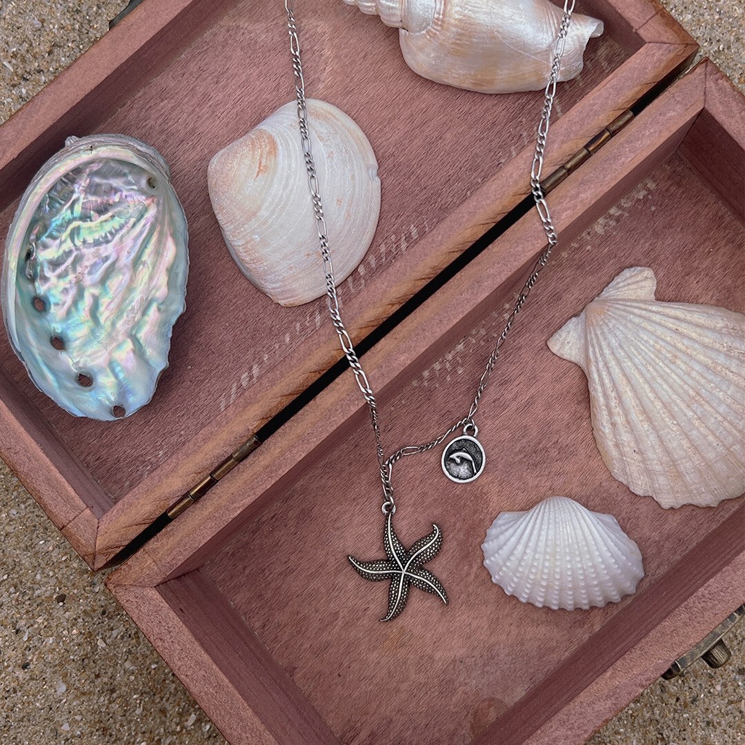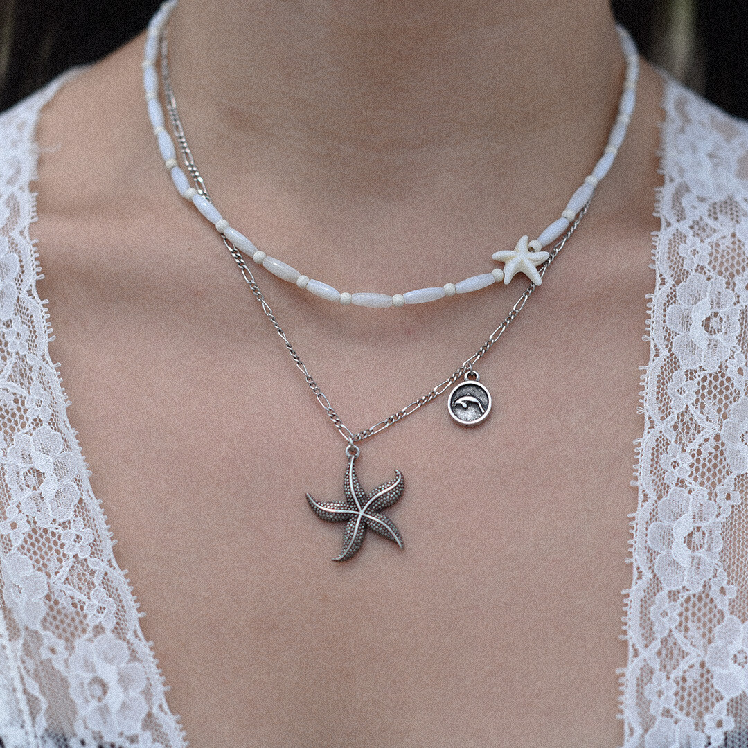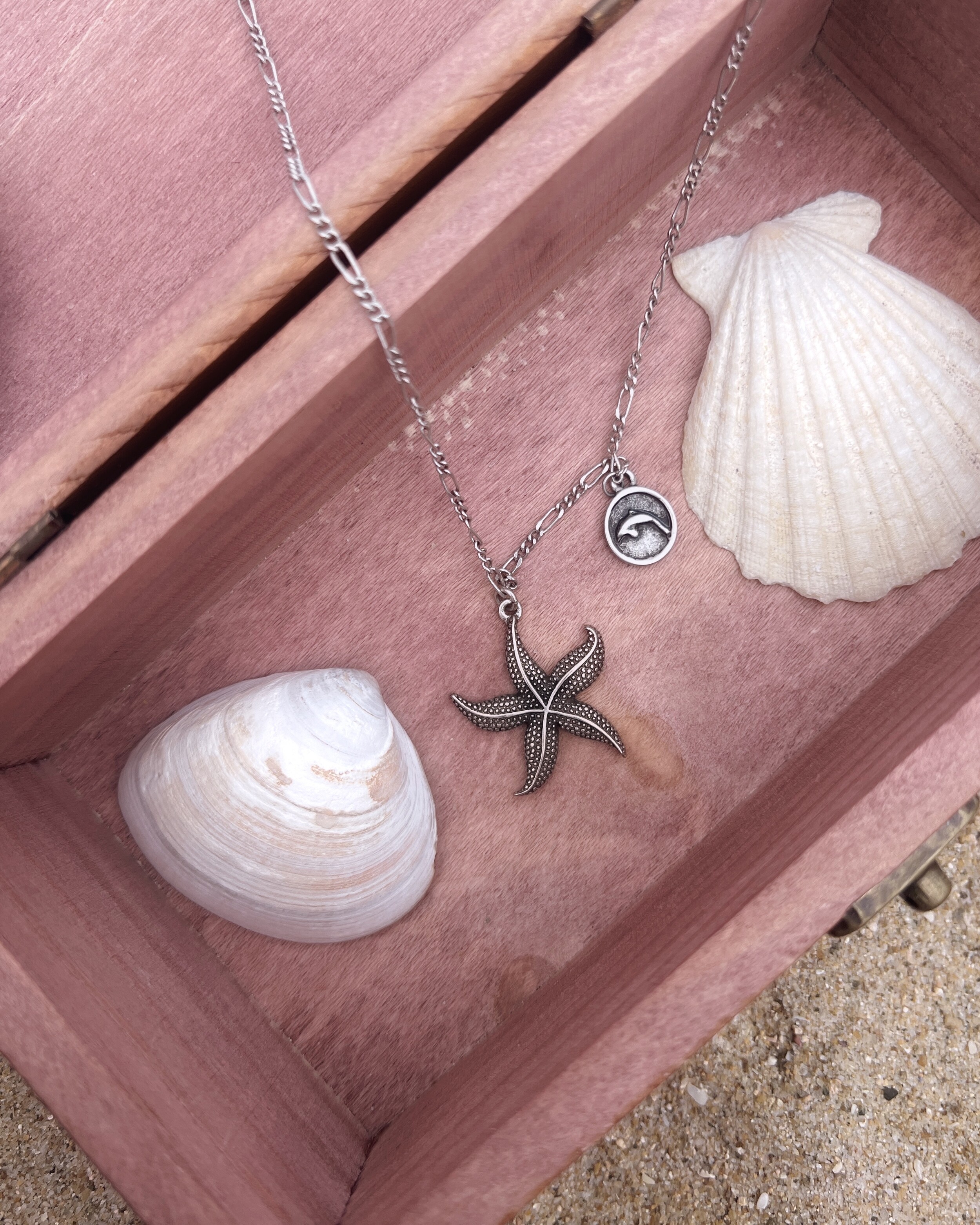 • 빈티지하고 앤티크한 느낌을 자아내는 버니쉬 은도금 펜던트, 불가사리 & 돌고래 포인트